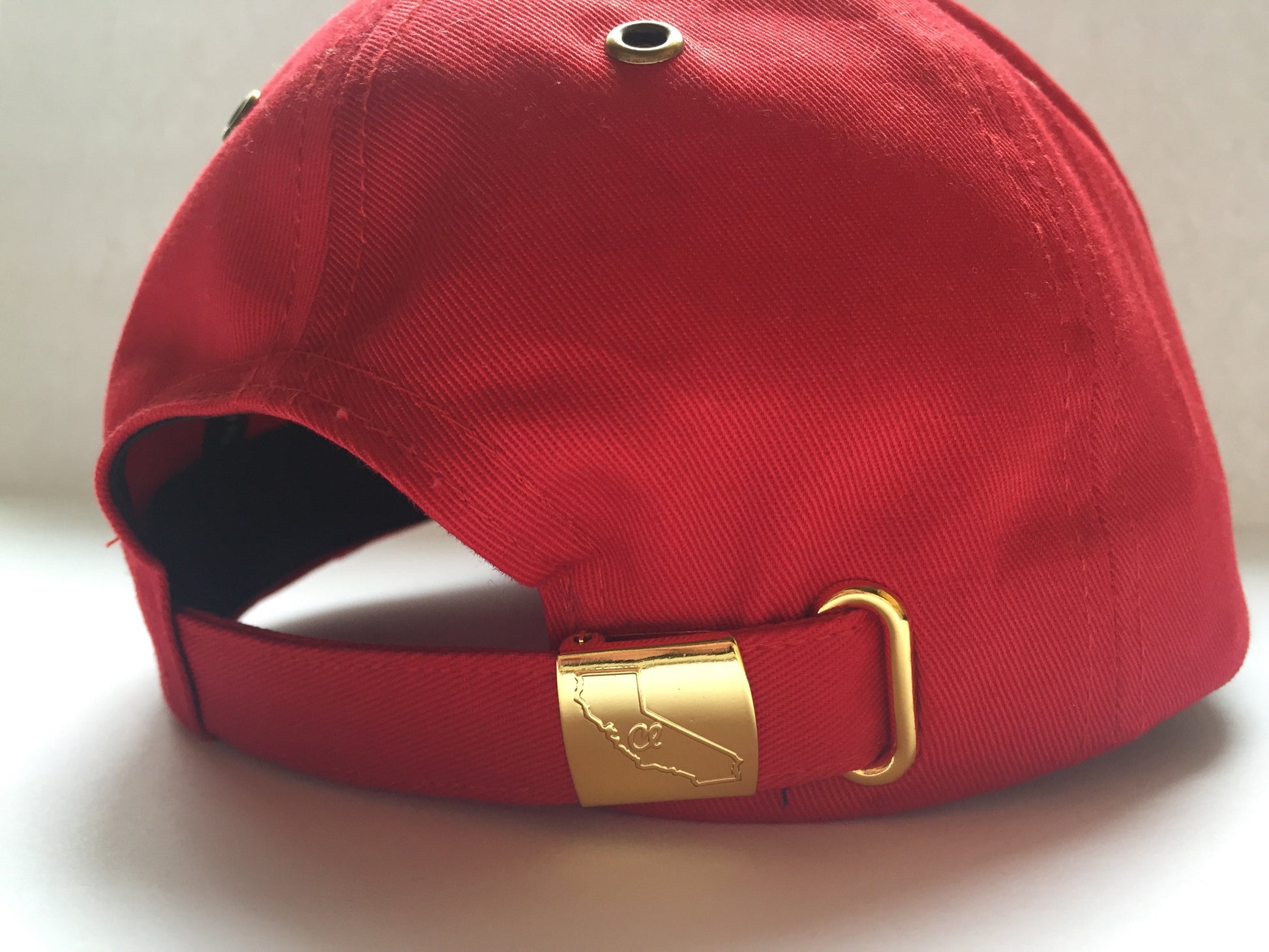 This California Living Classic Cap is made with a luxurious Gold Buckle. The details start with all the Gold accents. The Gold rivets on the caps is what brings this cap together. Details continue to the inside with the signature California Living inscription. With its Crimson red exterior and White double stictched Bear wear this classic cap to any occasion.